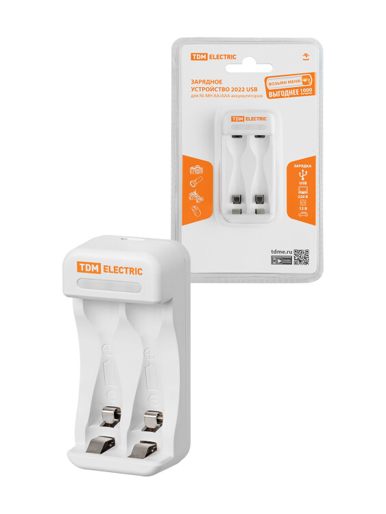 Зарядное устройство 2022 (200 mA 2 слота АА/ААА 2 кан.USB) TDM
