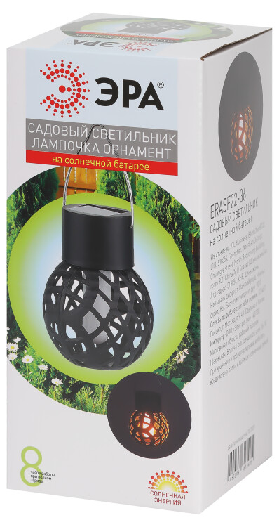 Светильник уличный ЭРА ERASF22-36 на солнечных батареях садовый подвесной Лампочка орнамент 7 см