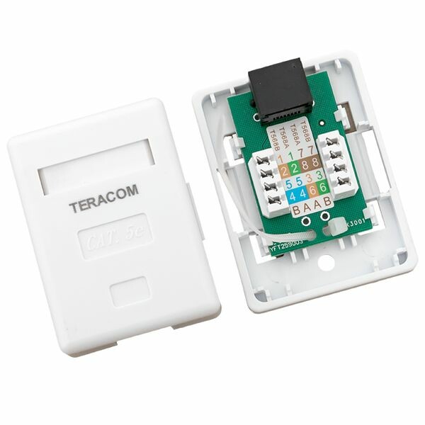 Розетка настенная TERACOM Cat.5E неэкранированная 1 порт RJ-45 Dual IDC белая