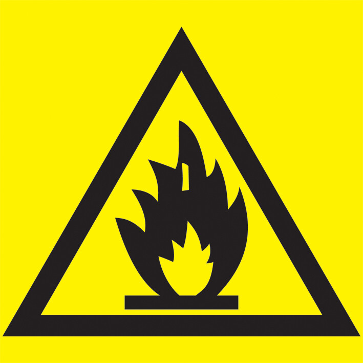 Самоклеящаяся этикетка: 150х150 мм, "Пожароопасно"