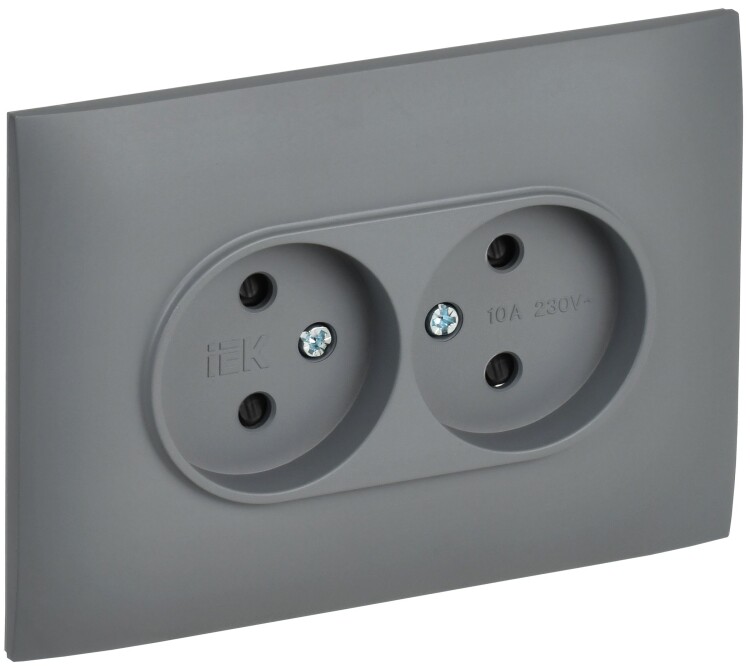 Розетка 2-местная без заземления с защитными шторками 10А в сборе SK-R09Gr серый SKANDY