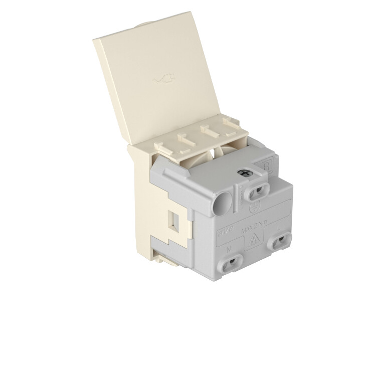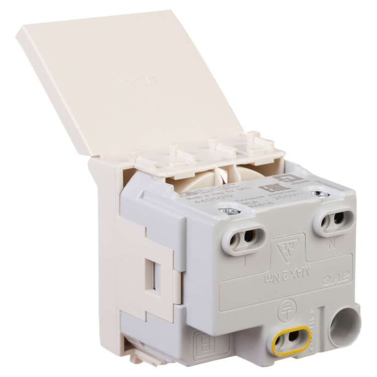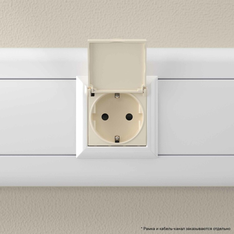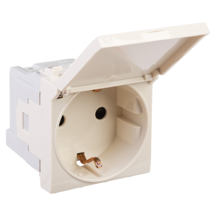 Розетка с крышкой модульная, 2P+E, с з/ш, "Avanti", "Ванильная дымка", 2 модуля