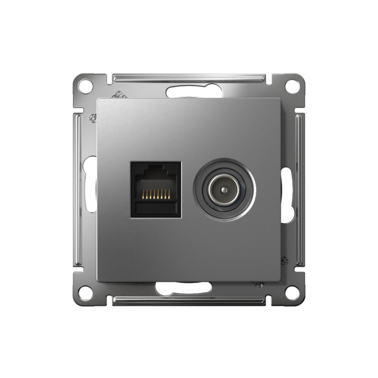 Розетка двойная TV + RJ45 кат.5е сталь AtlasDesign