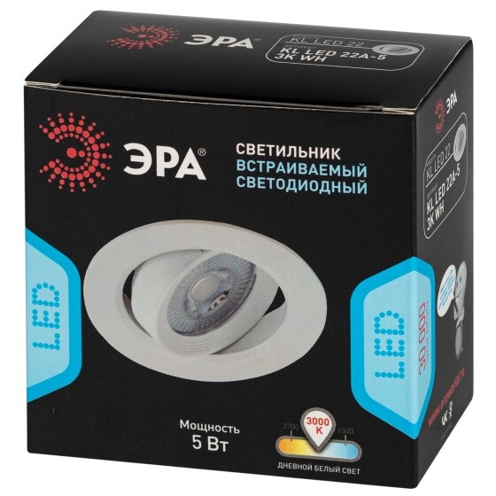 KL LED 22A-5 3K WH Светильник ЭРА светодиодный круглый поворотн. LED SMD 5W 3000K, белый (100/1600)