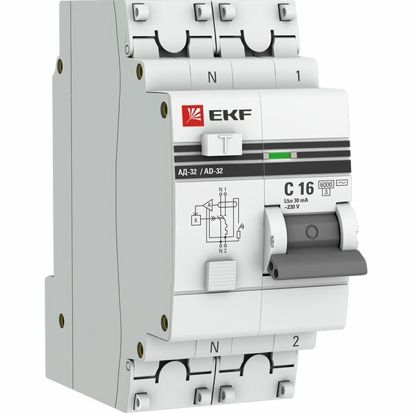 АД-32 1P+N 16А (С) 30мА тип (АС) эл. 6кА EKF PROxima
