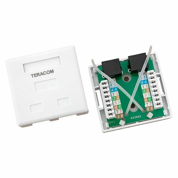 Розетка настенная TERACOM Cat.5E неэкранированная 2 порта RJ-45 Dual IDC белая