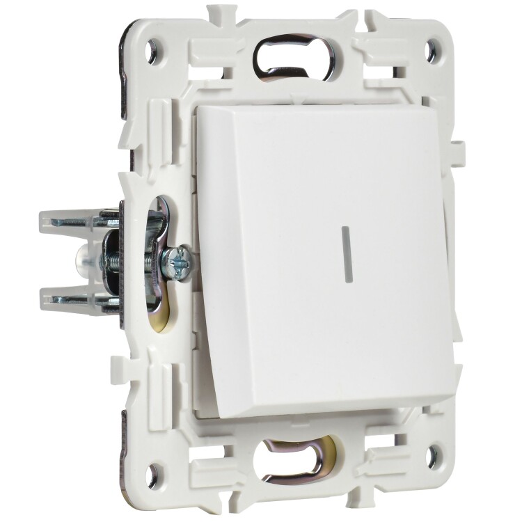Выключатель 1 клавишный проходной с индикацией 10А арктический белый SKANDY