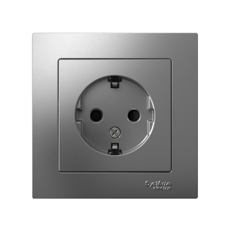 Розетка 2P+E со шторками в сборе 16А сталь AtlasDesign