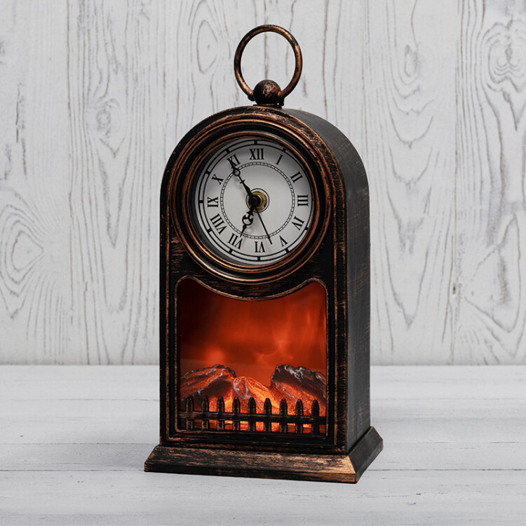 Светодиодный камин Старинные часы с эффектом живого огня 14,7x11,7x25 см, бронза, батарейки 2xС (не в комплекте) USB NEON-NIGHT