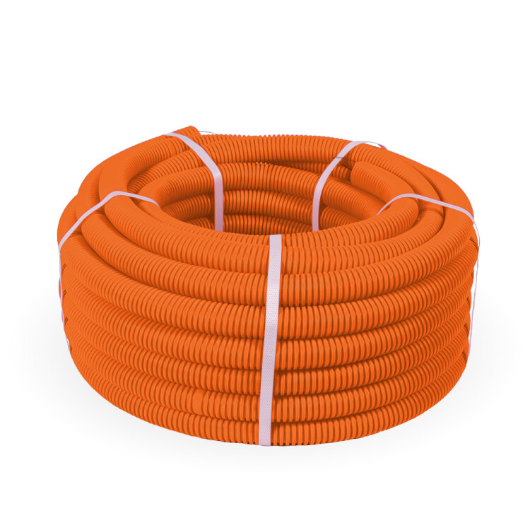 Труба гофрированная ПВХ легкая 350 Н оранжевая с/з d20 мм (100 м/4800 м уп/пал)