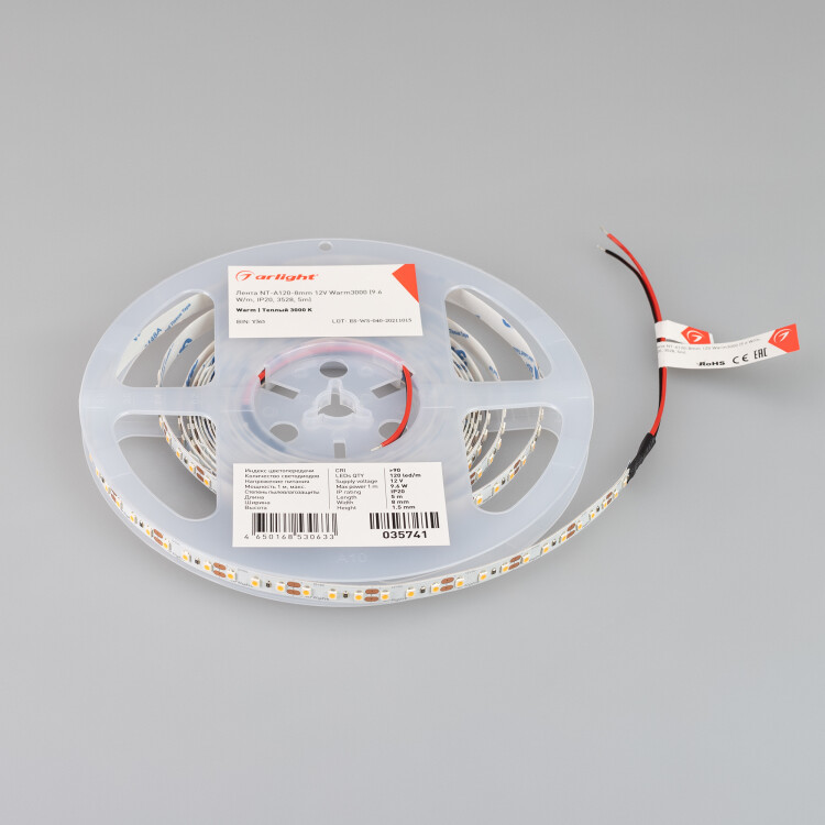 Светодиодная лента NT-A120-8mm 12V Warm3000 (9.6 W/m, IP20, 3528, 5m) (Arlight, 9.6 Вт/м, IP20)