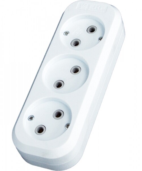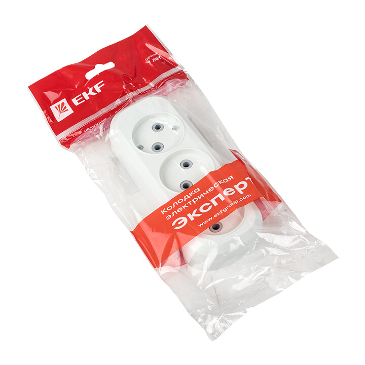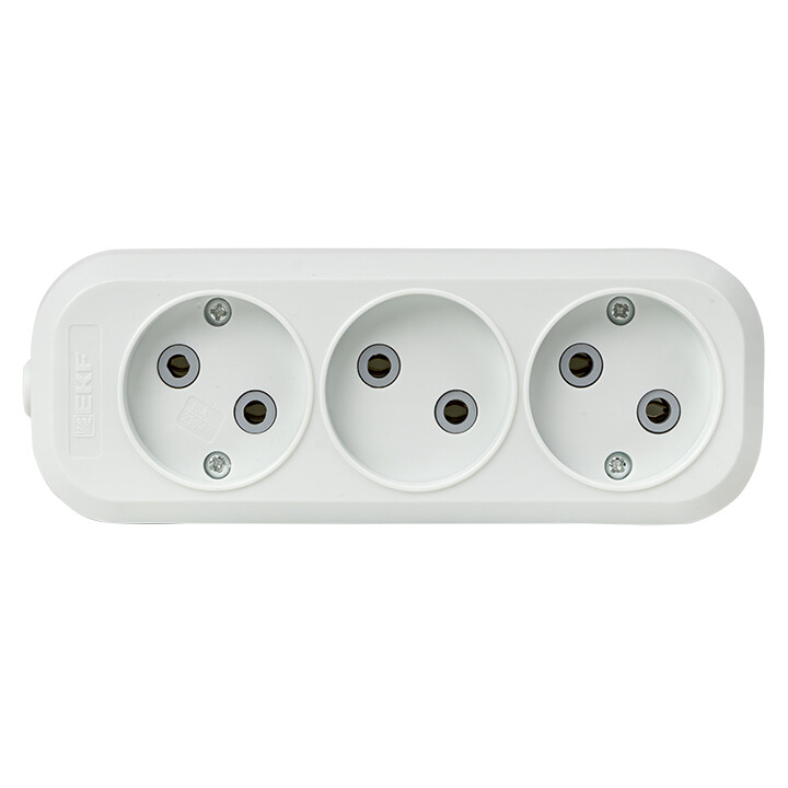 Колодка розеточная, 3 розетки, 10А, б/з, IP20, пластик, белая, Эксперт