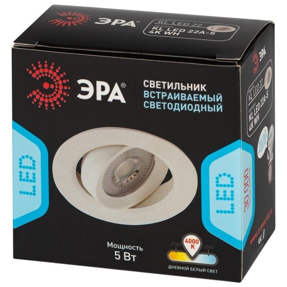 KL LED 22A-5 4K WH Светильник ЭРА светодиодный круглый поворотн. LED SMD 5W 4000K, белый (100/1600)