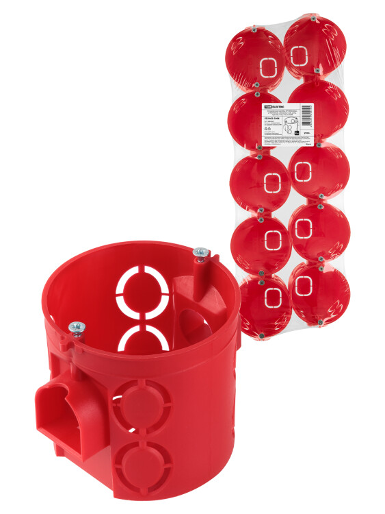 Установочная коробка СП D68х62мм, углубленная, саморезы, стык. узлы, красная, IP20, (10 шт) TDM