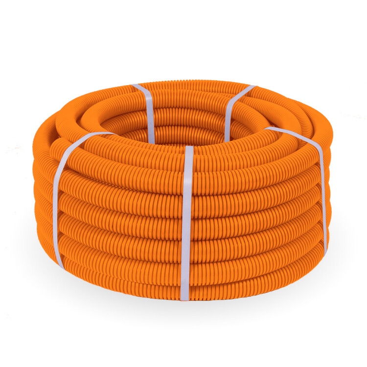 Труба гофрированная ПВХ легкая 350 Н оранжевая с/з d32 мм (25 м/1375 м уп/пал)