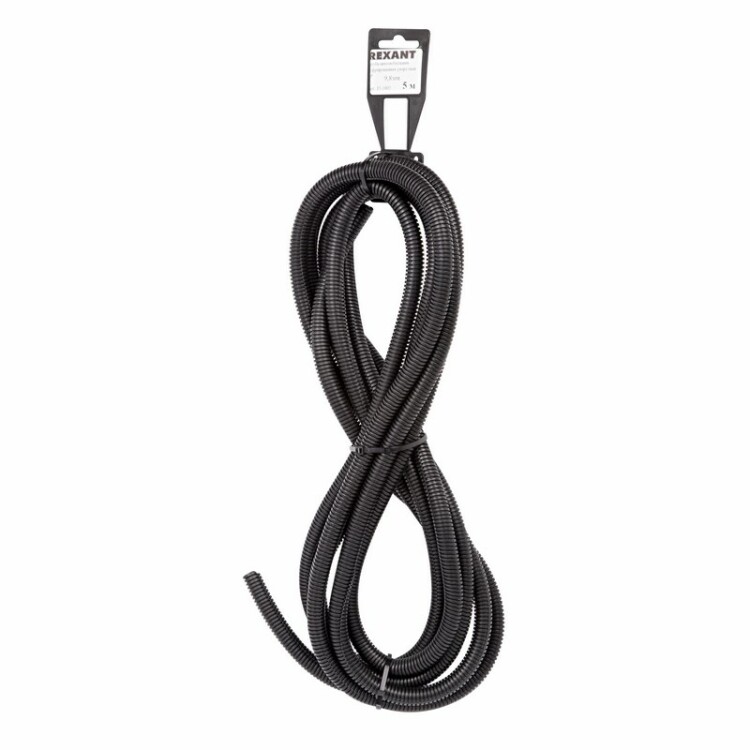 Труба автомобильная гофрированная ПП, O9,8мм, разрезная (буxта 5 м/уп) REXANT