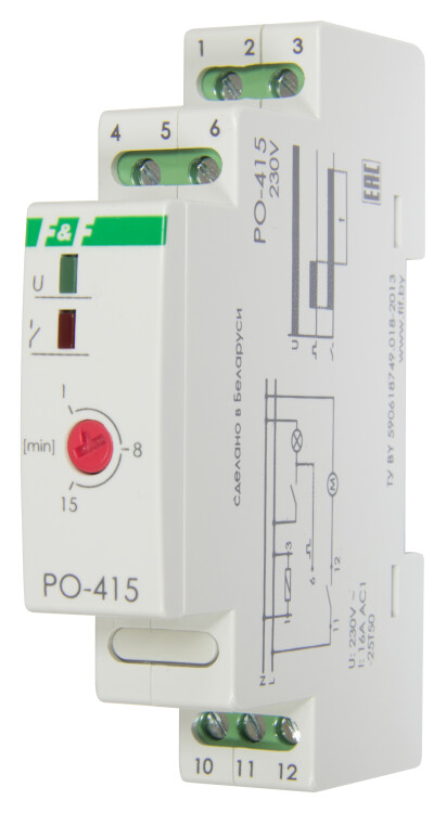 Реле времени PO-415 16А 230В 1 перекл. IP20 задержка выключ./управ. контактом монтаж на DIN-рейке F&F