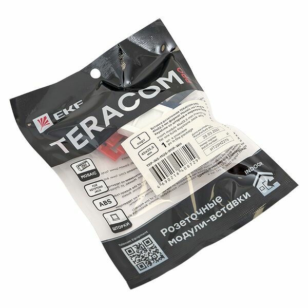 Вставка розеточная TERACOM PRO 45x22,5мм формат Mosaic на 1 модуль Keystone со шторкой и маркером белая