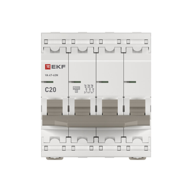 Автоматический выключатель 4P 20А (C) 6кА ВА 47-63N EKF PROxima