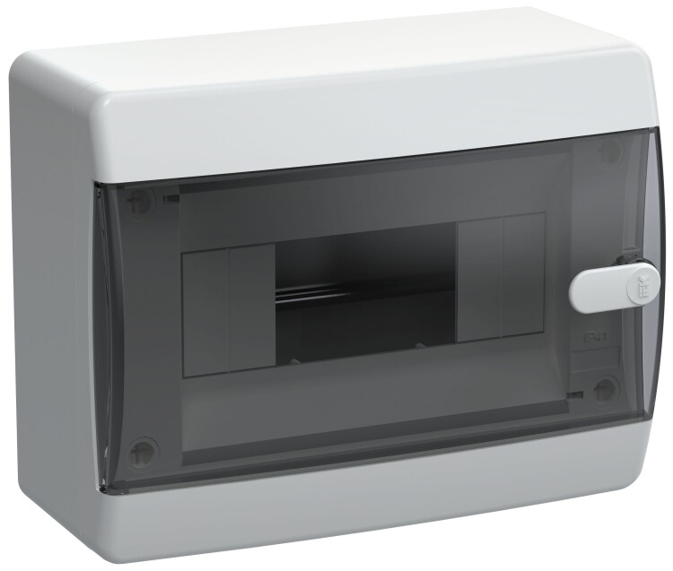 Бокс настенного монтажа 8мод. белый с прозрачной черной дверью IP41 ЩРН-П-8 UNION Compact IEK