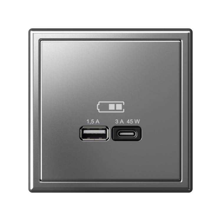 Розетка USB 2 порта A + C 45Вт высокоскор.заряд. QC, PD сталь ArtGallery
