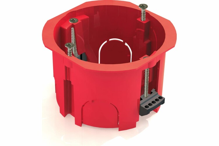 Коробка монтажная установочная 68х45мм для полых стен с пластмассовыми лапками, красная PLEXUP