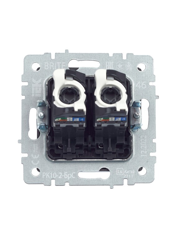 Розетка компьютерная двойная RJ45 кат.5E РК10-2-БрС сталь BRITE