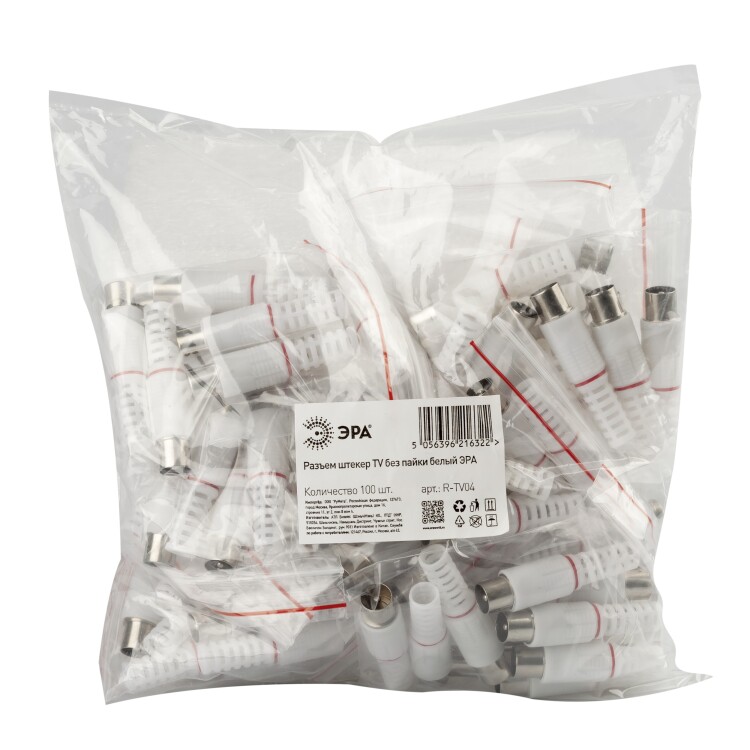 Разъем ЭРА штекер TV без пайки цвет белый упаковка 100 шт.