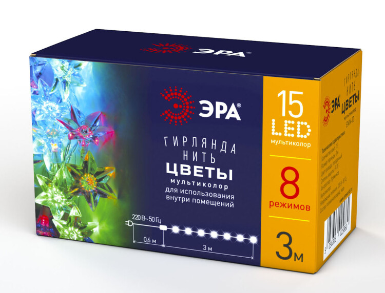ENIN-3Z ЭРА Гирлянда LED Нить Цветы 3 м мультиколор, 220V, IP20 (36/864)