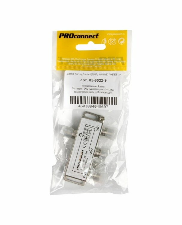 ДЕЛИТЕЛЬ ТВ х 3 под F разъём 5-1000 МГц PROCONNECT (ПАКЕТ БОБ) 1 шт