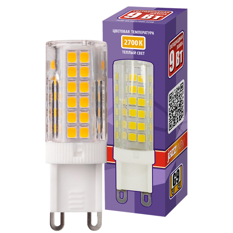 Лампа светодиодная 9 Вт 220В G9 капсульная, тёплый 2700К
