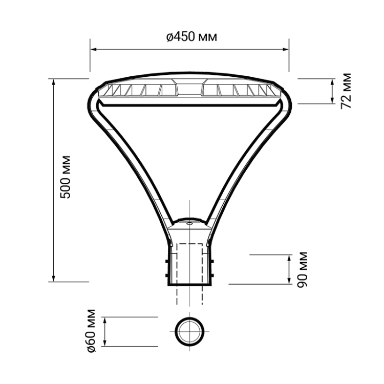 Светильник венчающий LED 60Вт 6000Лм 5000K IP65 PGL 03 60w 5000K IP65 GR