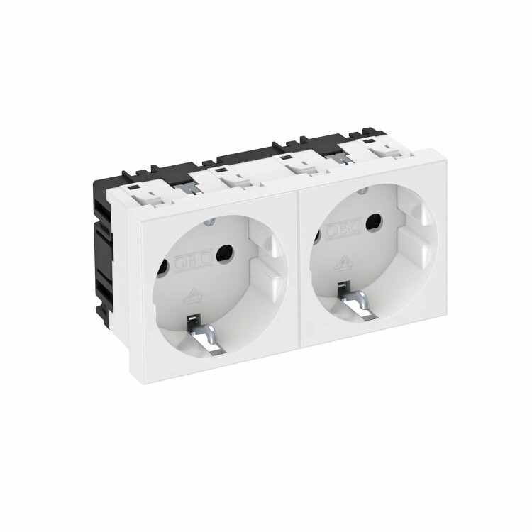 Розетка двойная 0° с з/к, 250 В, 16A (белый) Тип: STD-D0 RW2