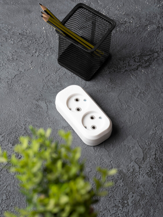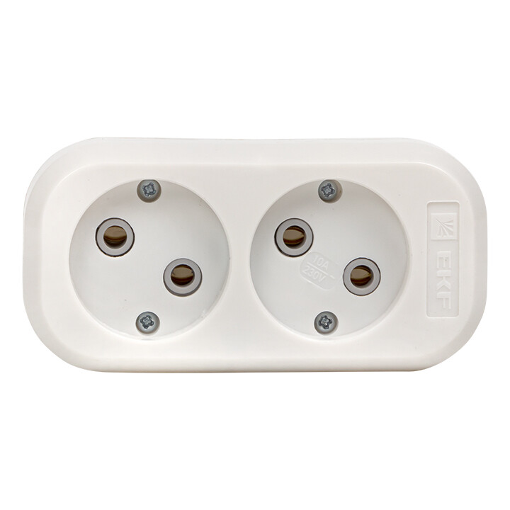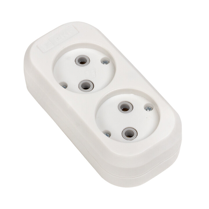 Колодка розеточная, 2 розетки, 10А, б/з, IP20, пластик, белая, Эксперт