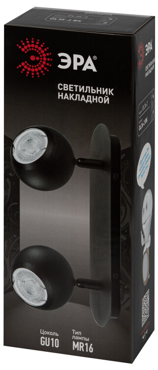 Светильник настенно-потолочный спот ЭРА OL36-2 BK MR16 GU10 IP20 черный