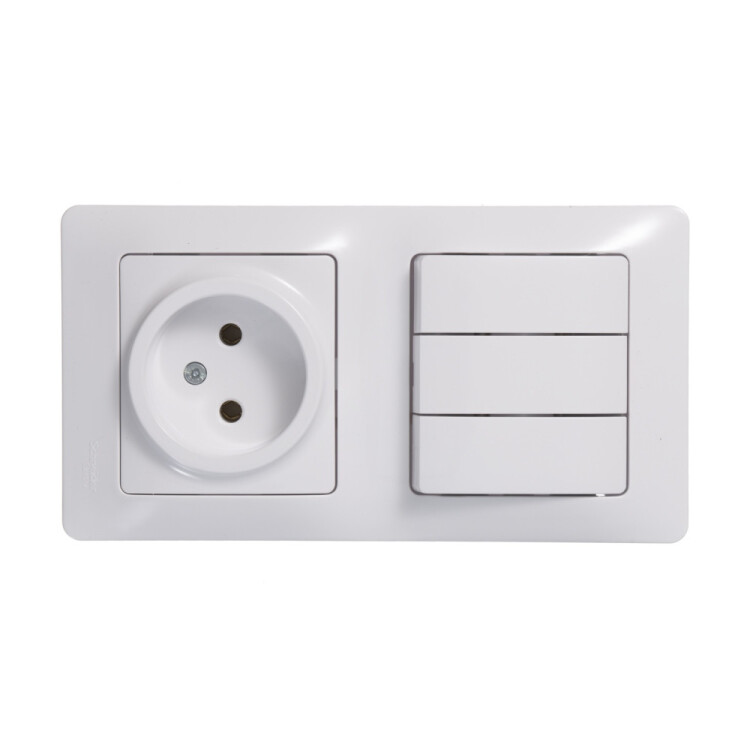 GLOSSA БЛОК: РОЗЕТКА + 3кл. ВЫКЛЮЧАТЕЛЬ БЕЛЫЙ