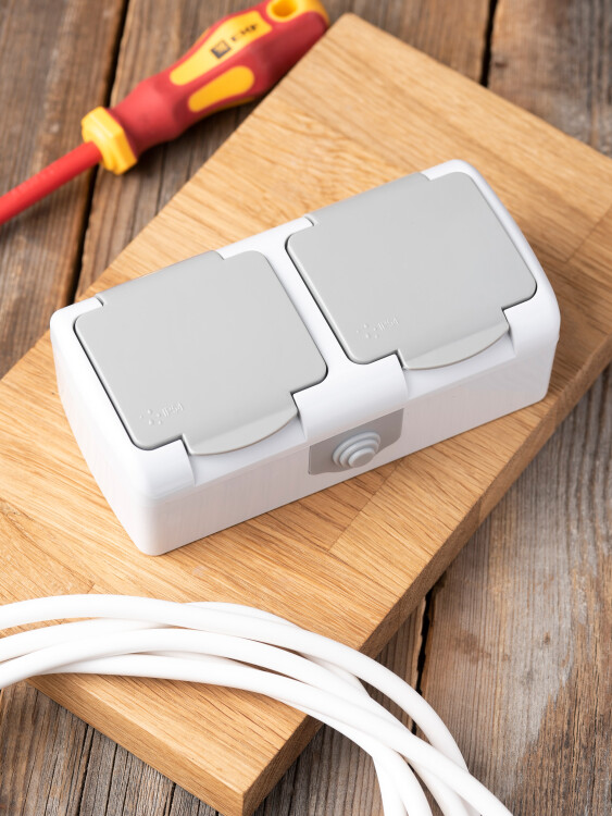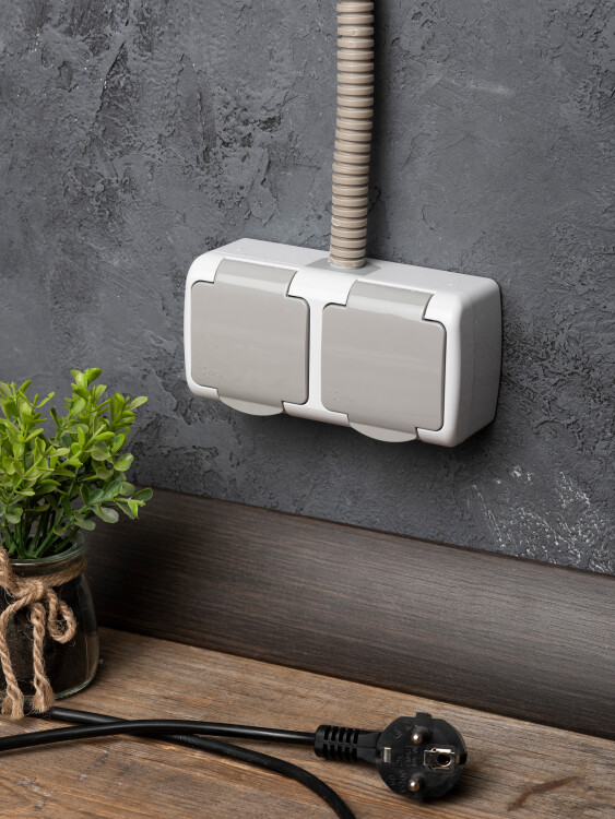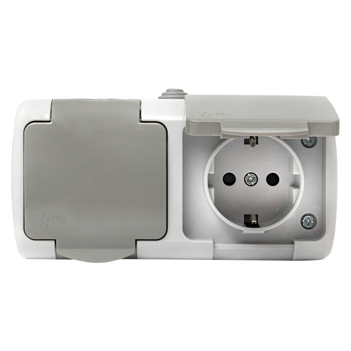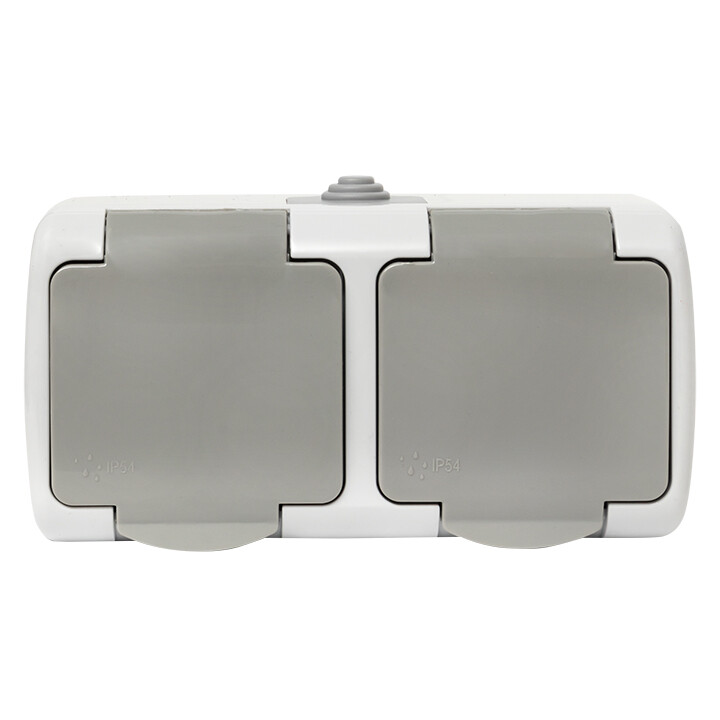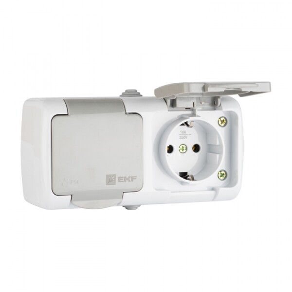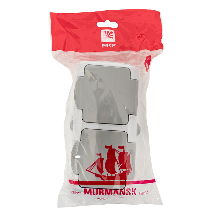 Розетка двойная 2х2P+E со шторками с крышкой накладная серый IP54 EKF Мурманск