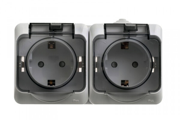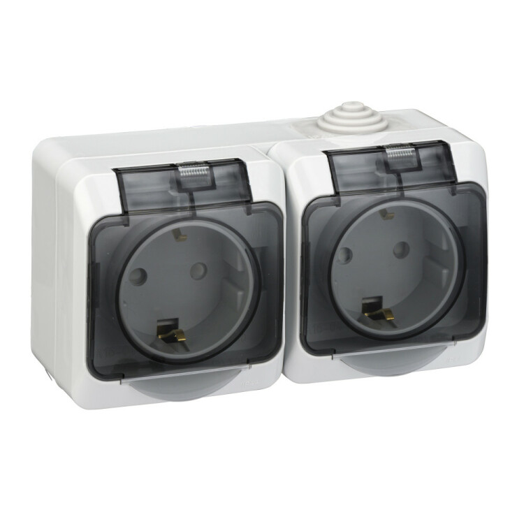 Розетка двойная 2х2P+E со шторками накладная серый IP44 Этюд
