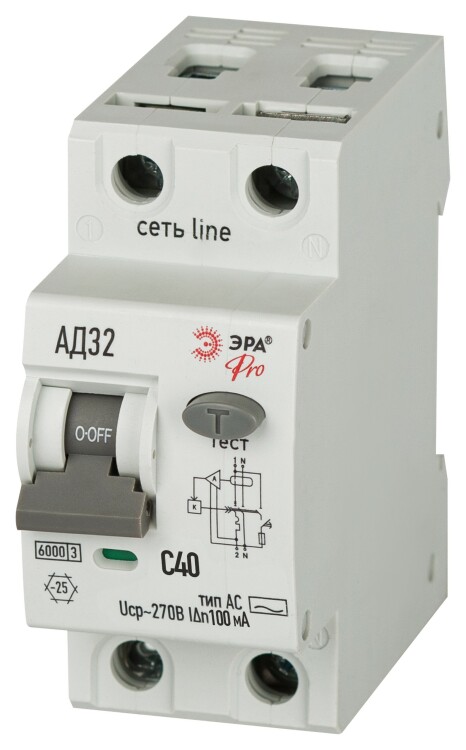 АВДТ 6кА ЭРА PRO D326E2C40АC100P АД-32 электронное 1P+N C40 100мА тип АC защита 270В