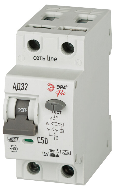 АВДТ 6кА ЭРА PRO D326M2C50А100 АД-32 электромеханическое 1P+N C50 100мА тип А