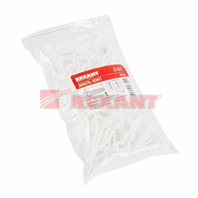 Дюбель-xомут 6-12мм, прямоугольный, белый (100 шт/уп) REXANT