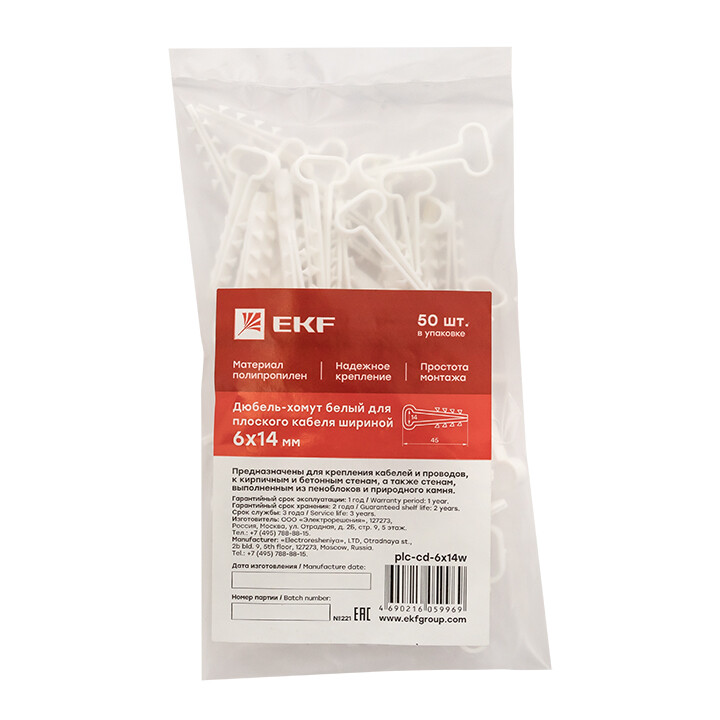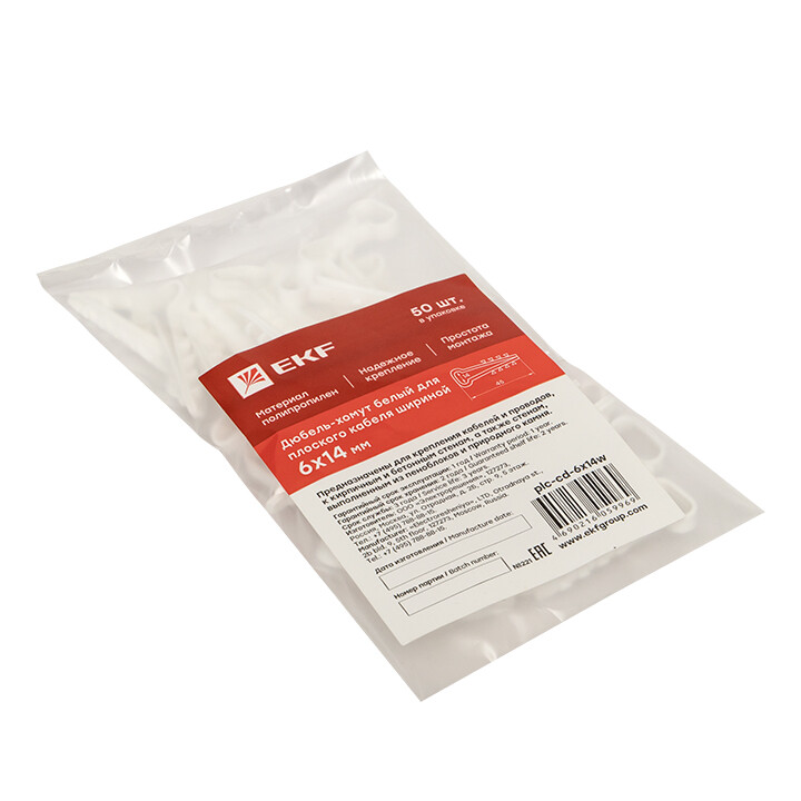 Дюбель-хомут (6х14 мм) для плоского кабеля белый (100 шт.) EKF PROxima