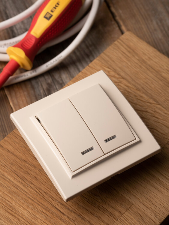 Выключатель 2-кл. СП, Минск, с индикатором 10А, бежевый EKF