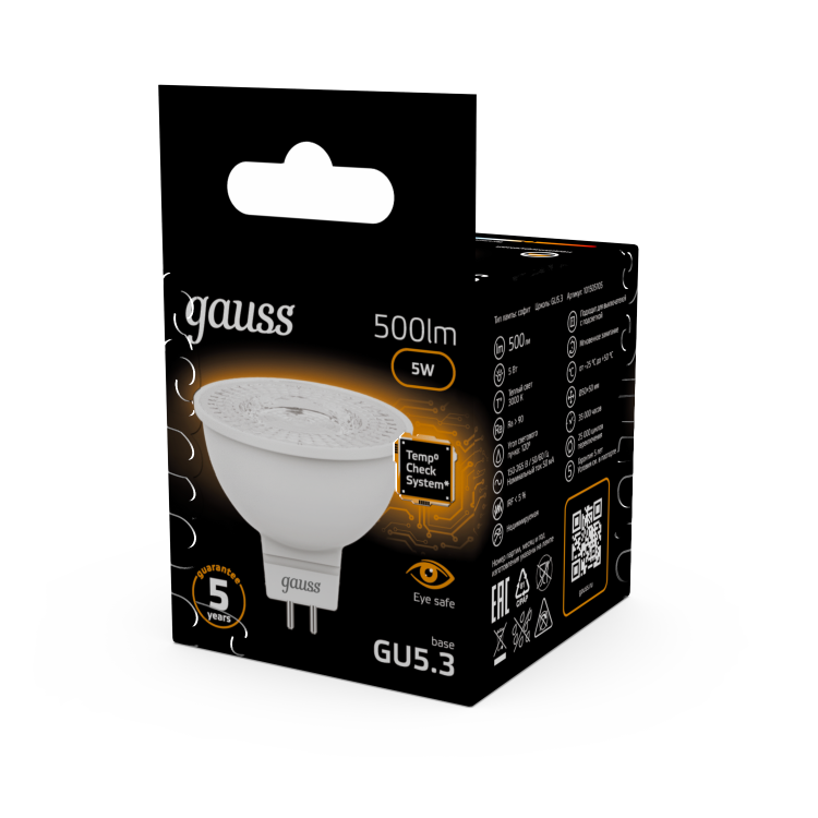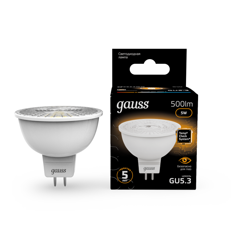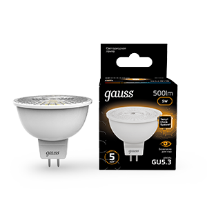 Лампа светодиодная 5 Вт 230В GU5.3 d=51mm, 3000K тёплый