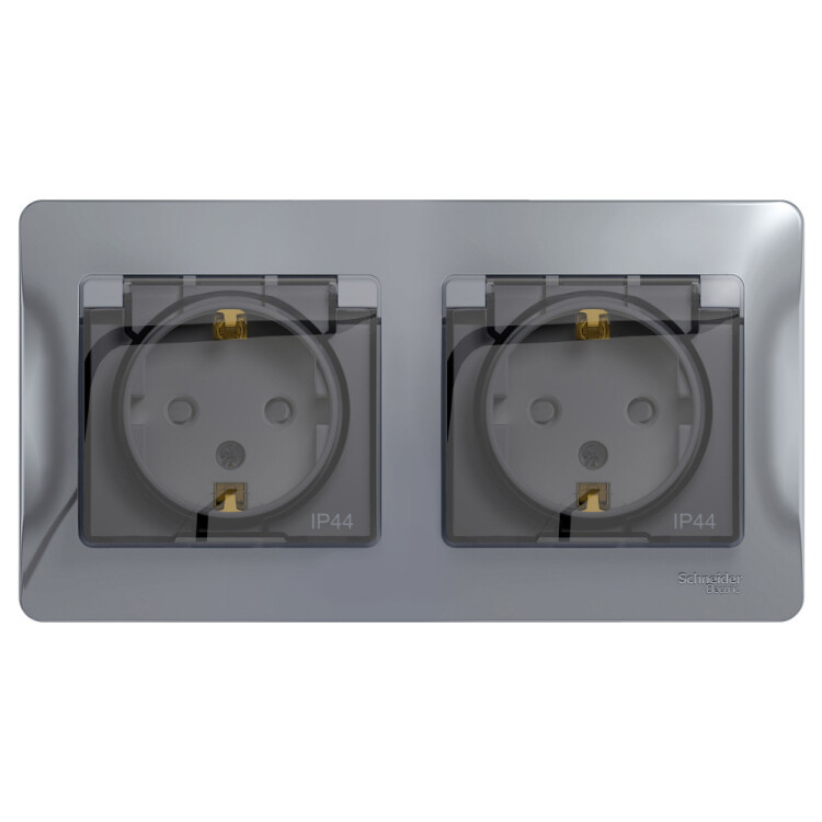 РОЗЕТКА 2-ая з/к, шт, в сб,IP44,АЛЮМИНИЙ