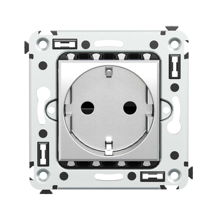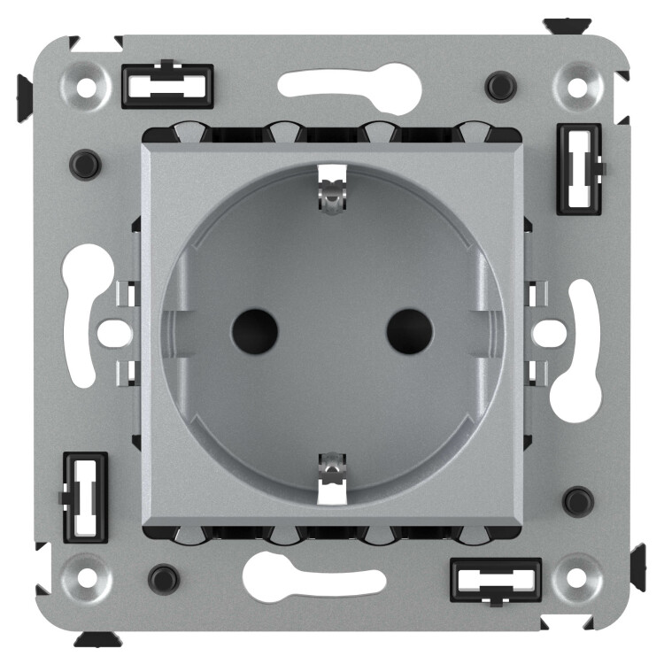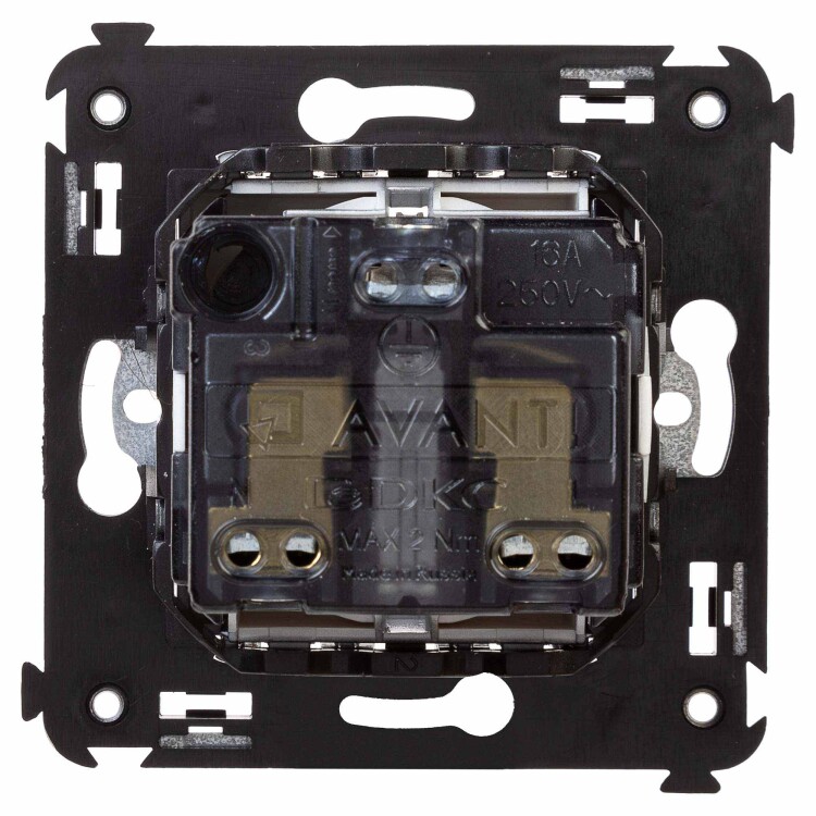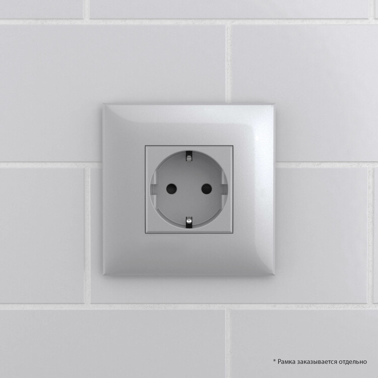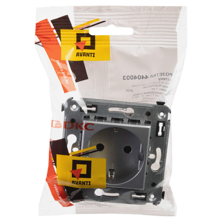 Розетка в стену, 2P+E, с з/ш, "Avanti", "Закаленная сталь"