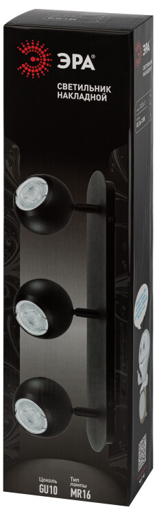 Светильник настенно-потолочный спот ЭРА OL36-3 BK MR16 GU10 IP20 черный