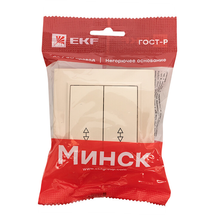 Выключатель 2-кл. СП проходной 10А бежевый Минск EKF