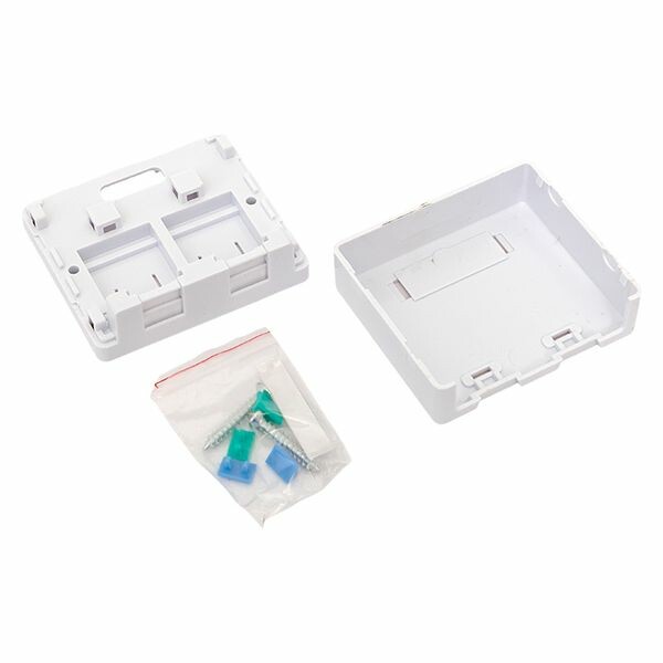Корпус настенной розетки TERACOM PRO на 2 модуля Keystone со шторками и маркерами белый