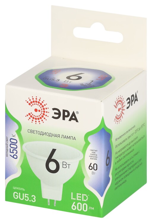Лампочка светодиодная ЭРА GREEN LINE LED MR16-6W-865-GU5.3 GL GU5.3 6 Вт софит холодный свет